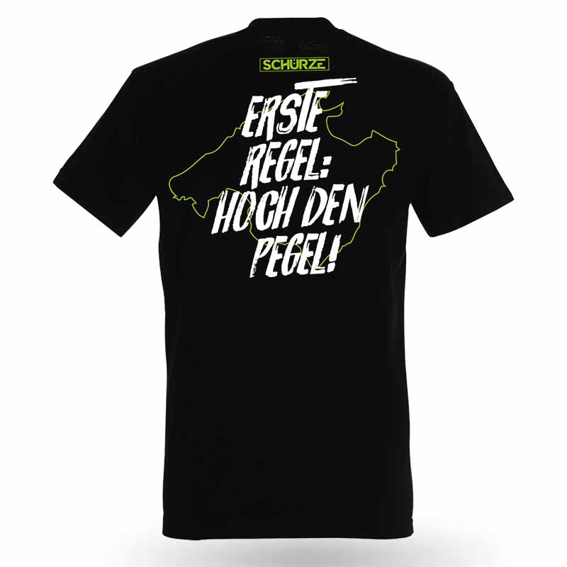 "Erste Regel - Hoch den Pegel" Das Shirt ist der perfekte Begleiter für deine nächste Party Nacht! Sicher dir all die tollen neuen Sachen und stöber gleich mal durch den Shop.